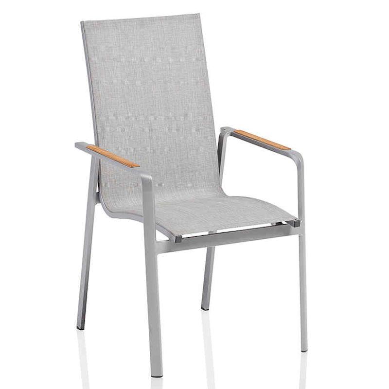 Kettler Diamond Stapelsessel HL silber-hellgrau, Outdoorgewebe, Teak-Armlehnen