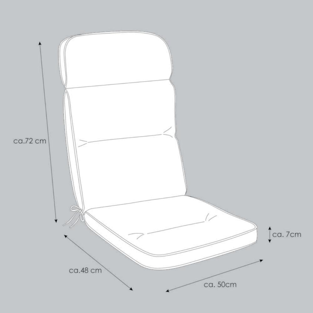 Verwandeln Sie jeden harten Hochlehner in eine besonders bequeme und stilvolle Sitzgelegenheit mit dieser KETTtex-Exklusiv® Auflage. Mit einer Länge von 120cm, einer Breite von 50cm und einer Polsterstärke von 7cm im Sitz- und Rückenbereich sorgt sie für angenehmen Sitzkomfort. Die Sitzfläche misst 50 x 50cm, der Rücken ist 70cm hoch und bietet so optimale Unterstützung beim Entspannen.