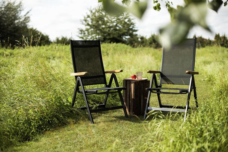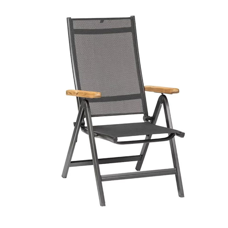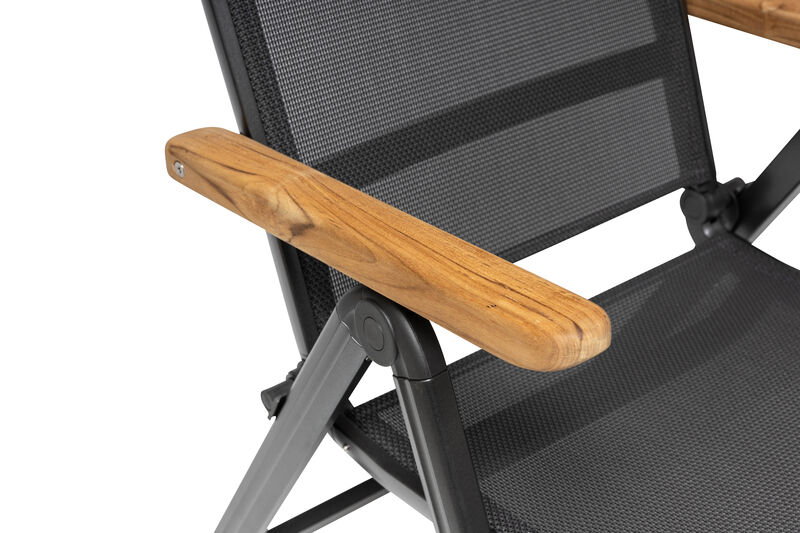 Kettler Granada Multipositionssessel mit Teakholz-Armlehnen, anthrazit/anthrazit