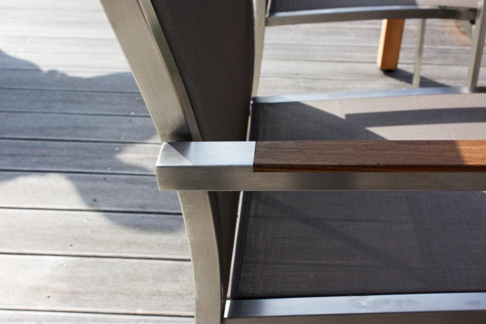 Zebra One Edelstahl-Stapelsessel mit Teakholz-Armlehne dark platinum
