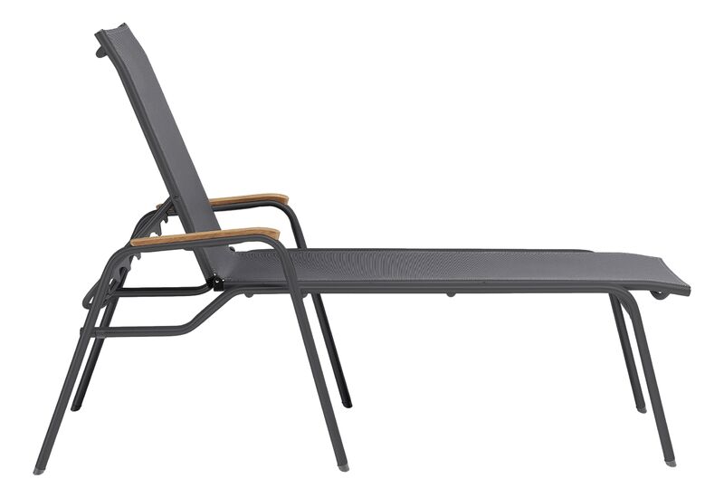 Kettler Cirrus Stapelliege m. Teak Armlehne, anthra./anthra.-grau, Aluminium/Outdoorgewebe