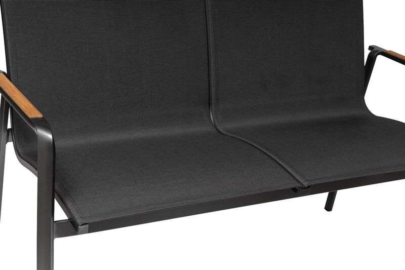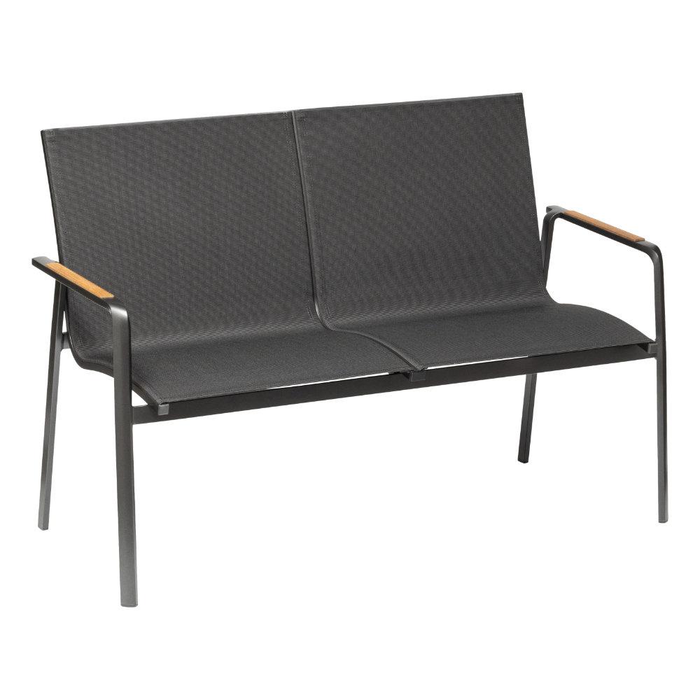 Kettler Diamond 2er Bank, anthrazit/charcoal, Teakholz-Armlehne