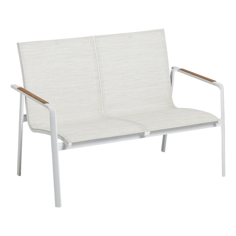 Kettler Diamond Lounge 2er Bank, weiß matt/beige, Teakholz-Armlehne Sitzhöhe 38cm