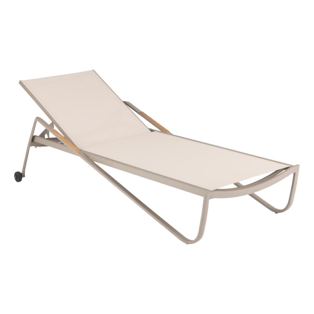 Kettler Diamond Stapelliege, taupe/Stucco/natur, mit Teakholz-Armlehnen
