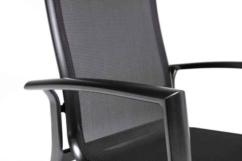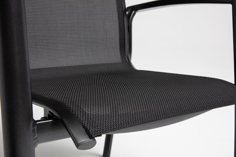 Das hautsympathische Outdoorgewebe ist wasserdurchlässig und schnelltrocknend, wodurch der Sessel auch nach einem Regenschauer schnell wieder einsatzbereit ist. Zudem ist das Material wetterfest sowie UV-beständig und damit bestens für den dauerhaften Einsatz im Außenbereich geeignet. Die Aluminium-Armlehnen in Anthrazit unterstreichen die moderne, elegante Optik.