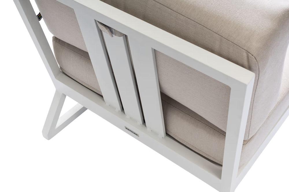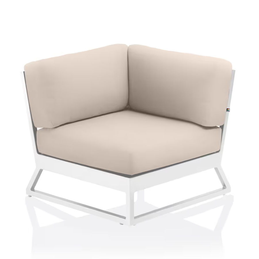 Das Eckteil-Modul ist aus leichtem, aber robustem Aluminium gefertigt, das nicht nur wetter- und rostfest ist, sondern auch eine lange Lebensdauer verspricht. Das verwendete Sunbrella®-Material ist bekannt für seine UV-Beständigkeit und Pflegeleichtigkeit, wodurch die Polster auch nach längerer Nutzung ihre Farbe und Form behalten.