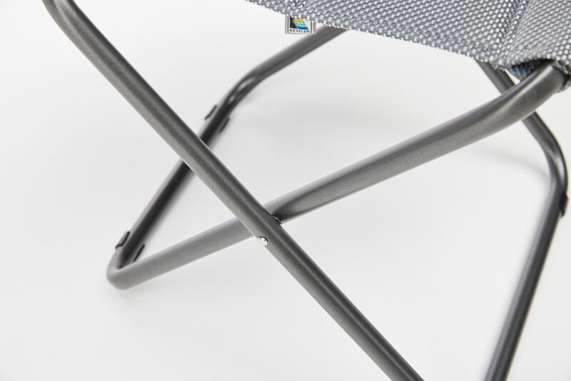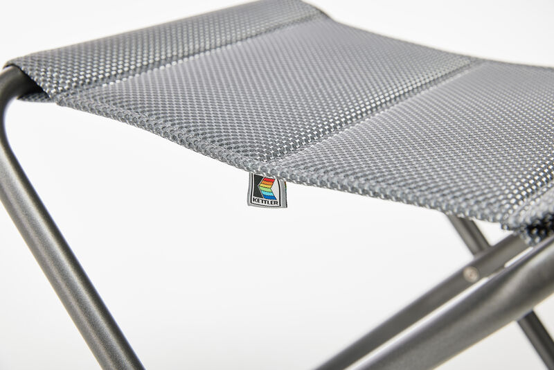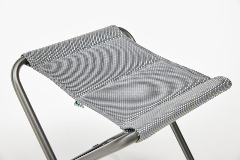 Das leichte, wetterfeste Aluminiumgestell ist rostfrei, pflegeleicht und bietet hohe Stabilität bei geringem Gewicht. Dank klappbarer Konstruktion lässt sich der Hocker besonders platzsparend verstauen.