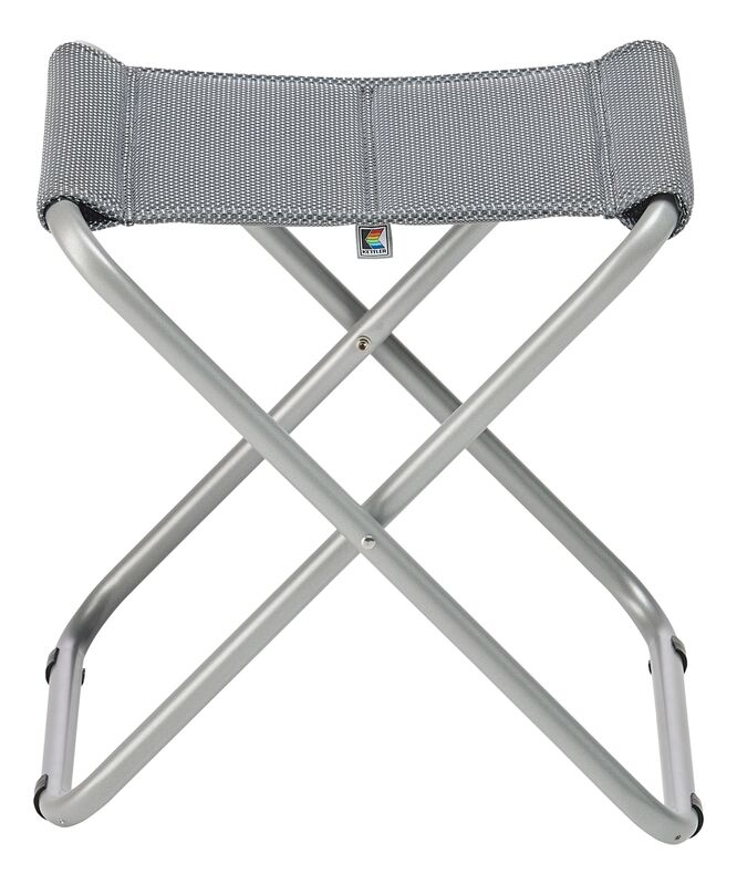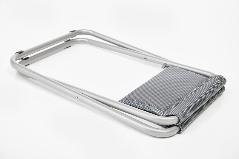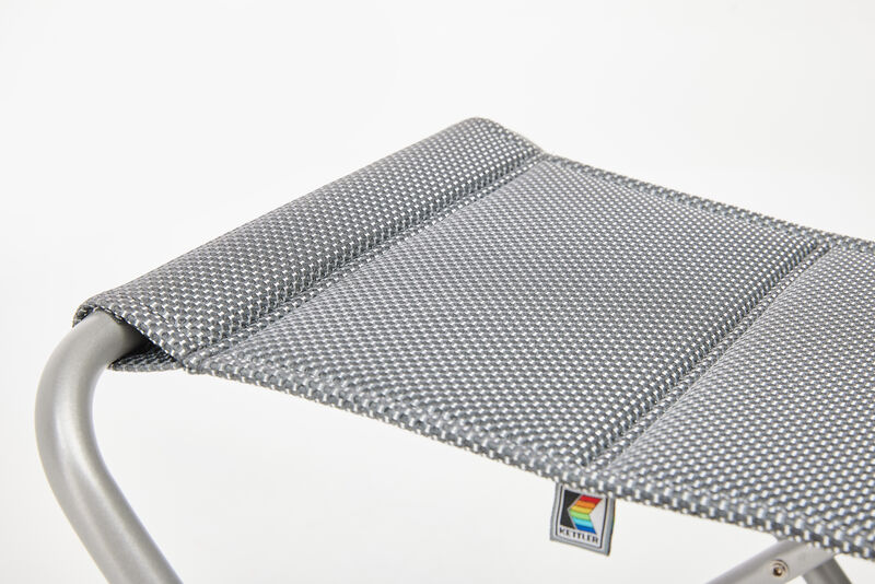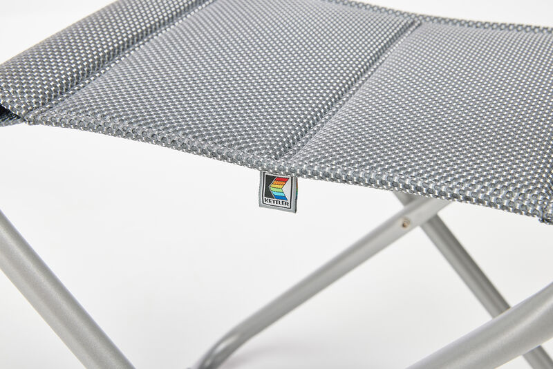 Das leichte, wetterfeste Aluminiumgestell ist rostfrei, pflegeleicht und bietet hohe Stabilität bei geringem Gewicht. Dank klappbarer Konstruktion lässt sich der Hocker besonders platzsparend verstauen.