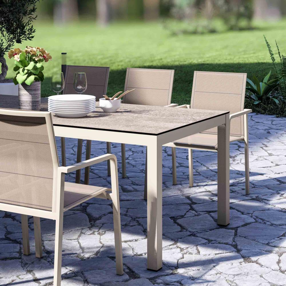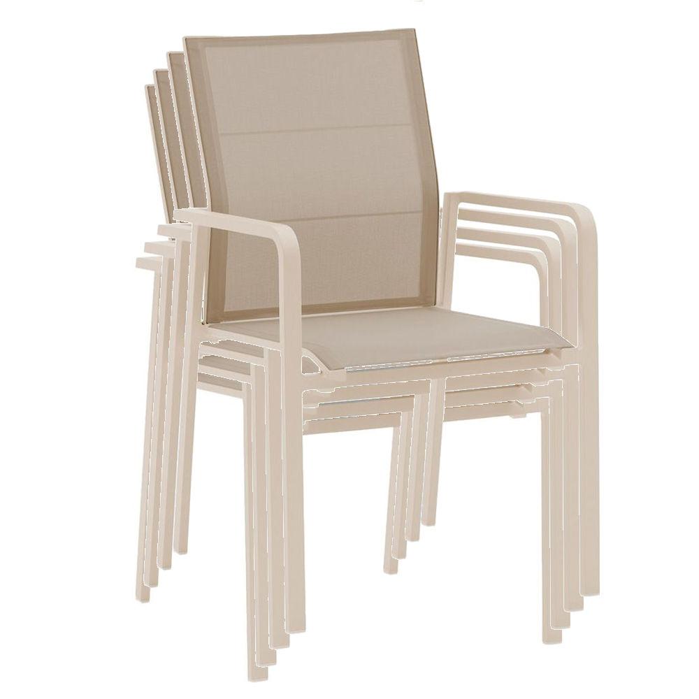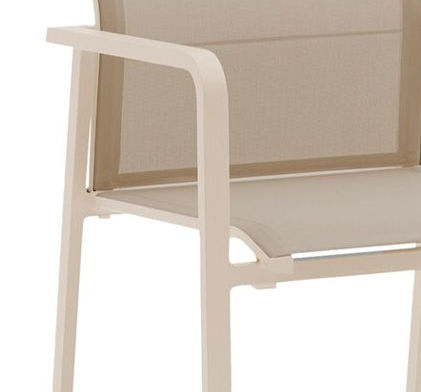 Atempause! Auf dem Zebra Sessel Bee können Sie richtig durchatmen. Sitz- und Rückenlehne des Stapelsessels sind aus feiner luftdurchlässiger Outdoor-Textil-Bespannung gearbeitet. Für besonders entspannendes Sitzklima. Unterstützt wird dieser Komfort durch die leicht nach hinten geneigten Armlehnen. Das stabile Aluminiumgestell wird in den Farben light taupe und die Bespannung in desert hergestellt.